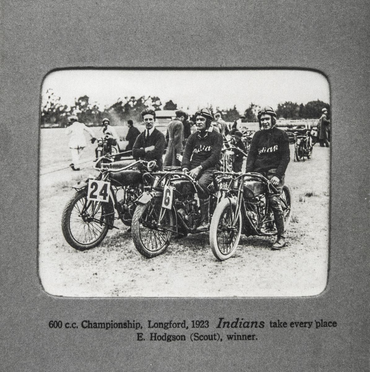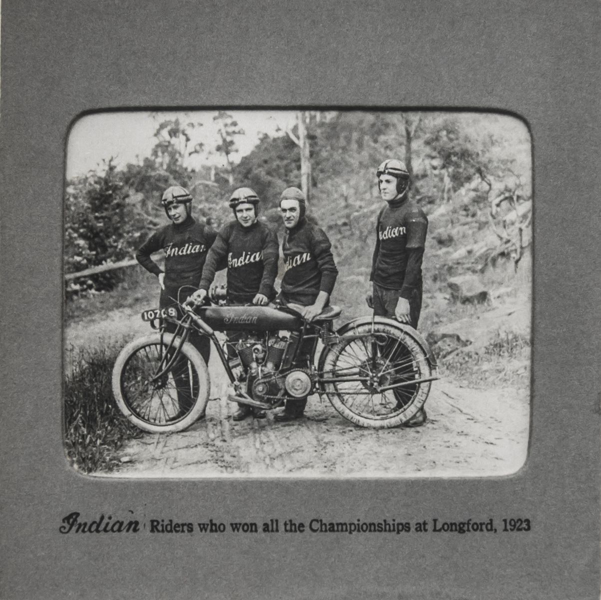 Other non-mounted photos include: Interior of the John King and Sons shop and showroom circa 1926; a muddy course 1927; Winners 1927 Reliability Trial and Maud Watkins riding an Indian Scout in the 24 hours Reliability Trial 1927.