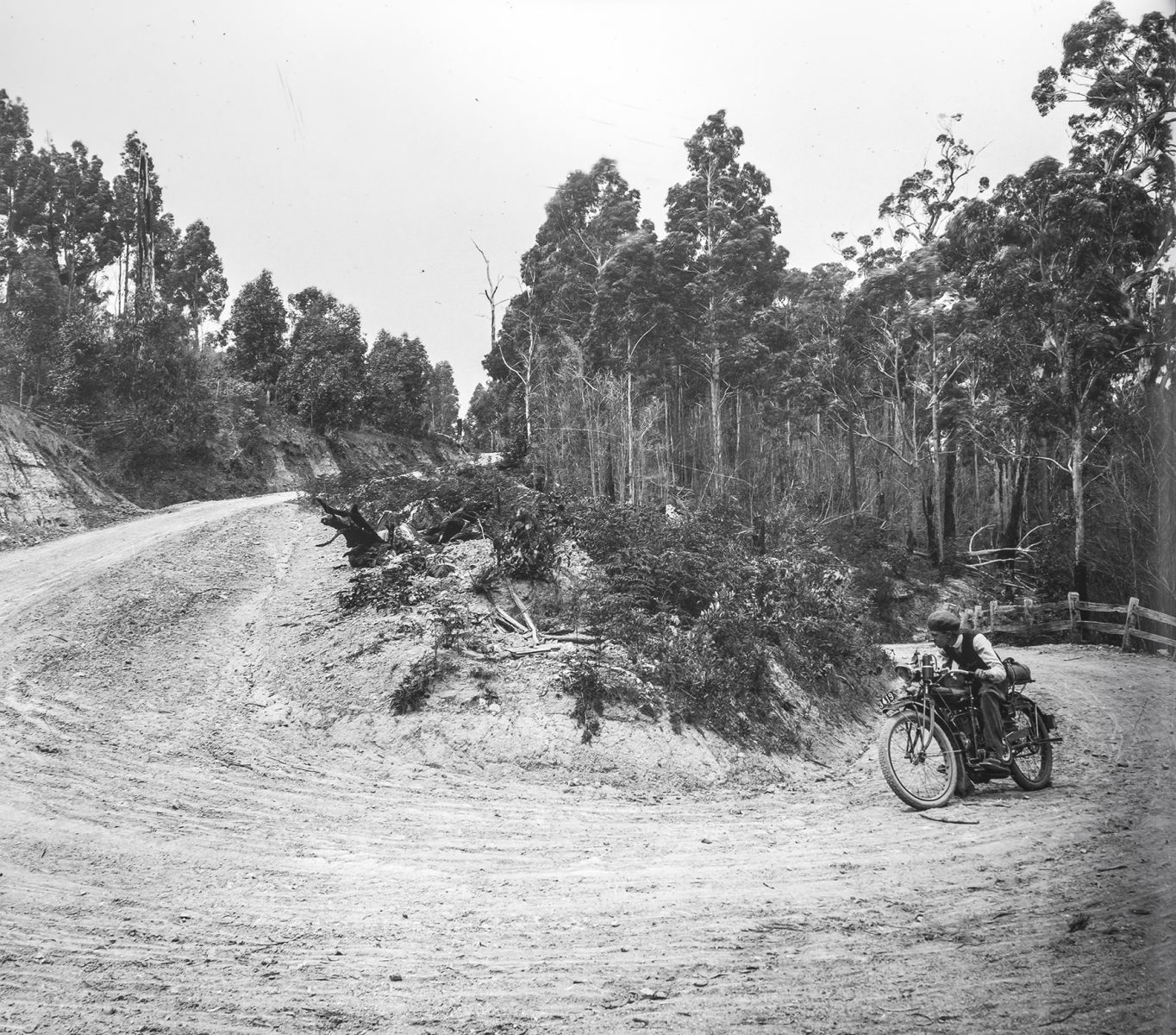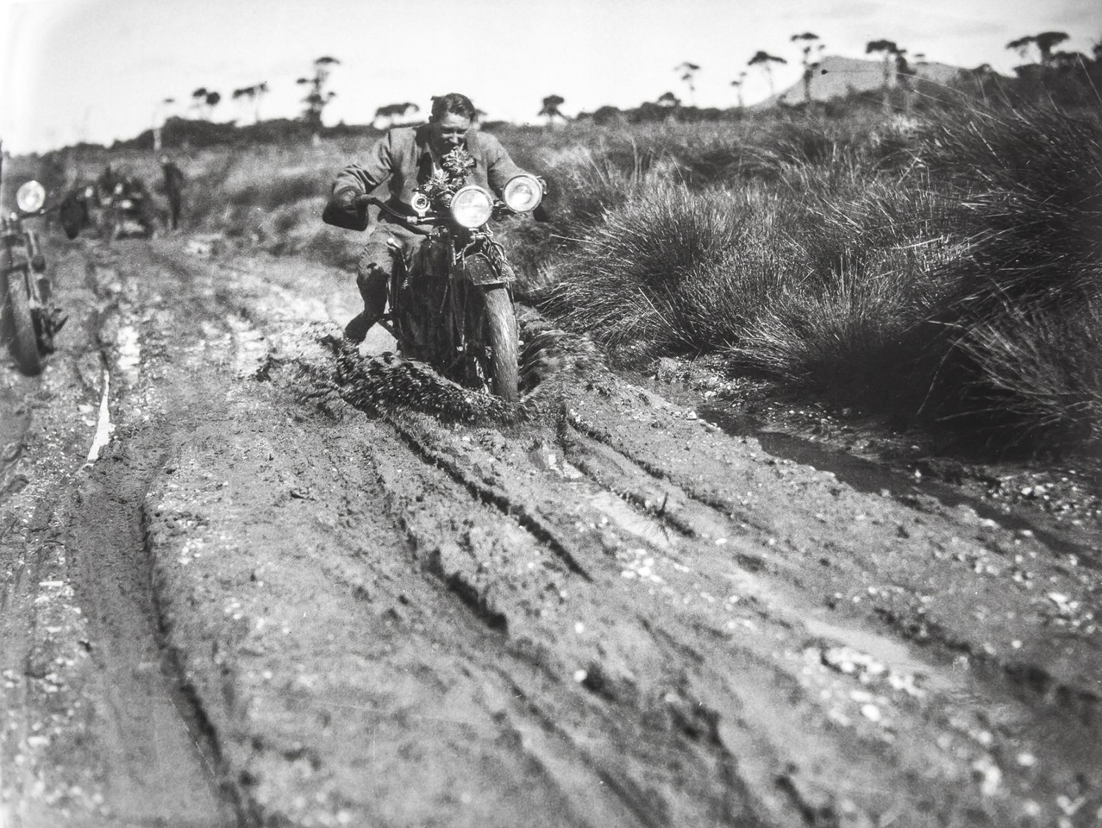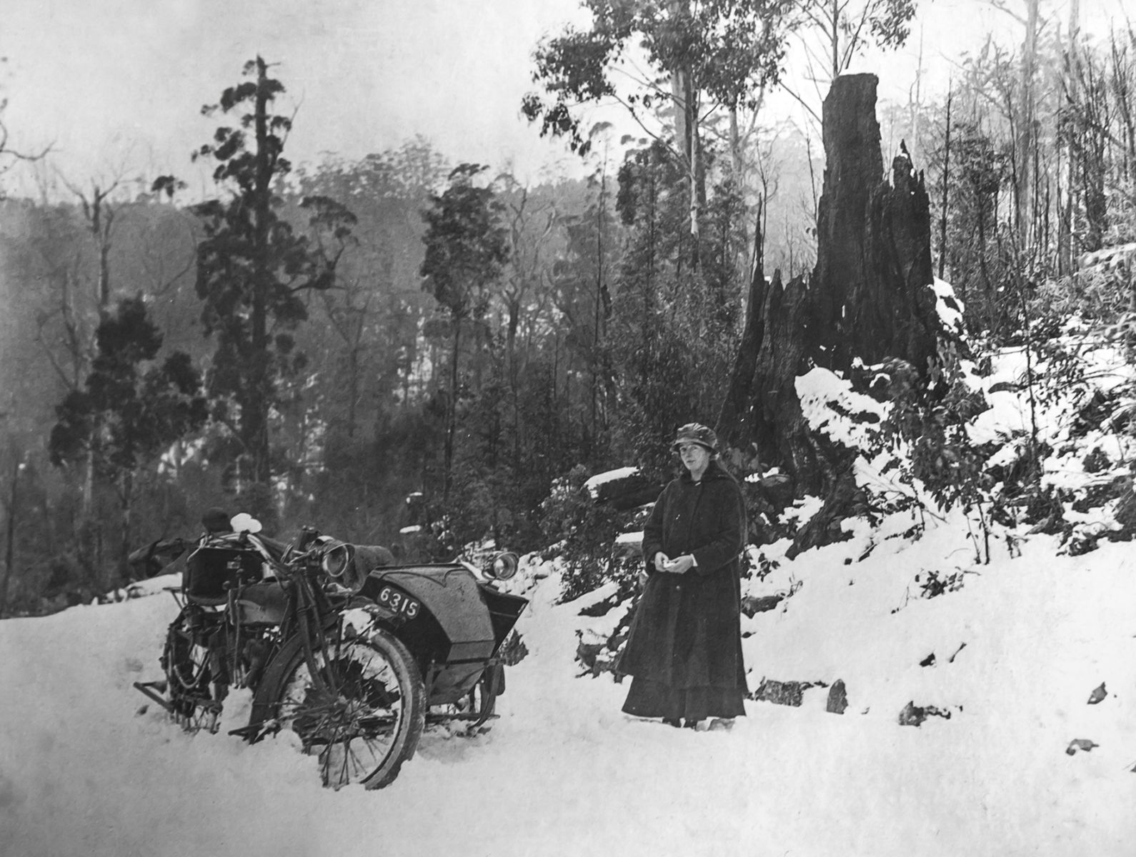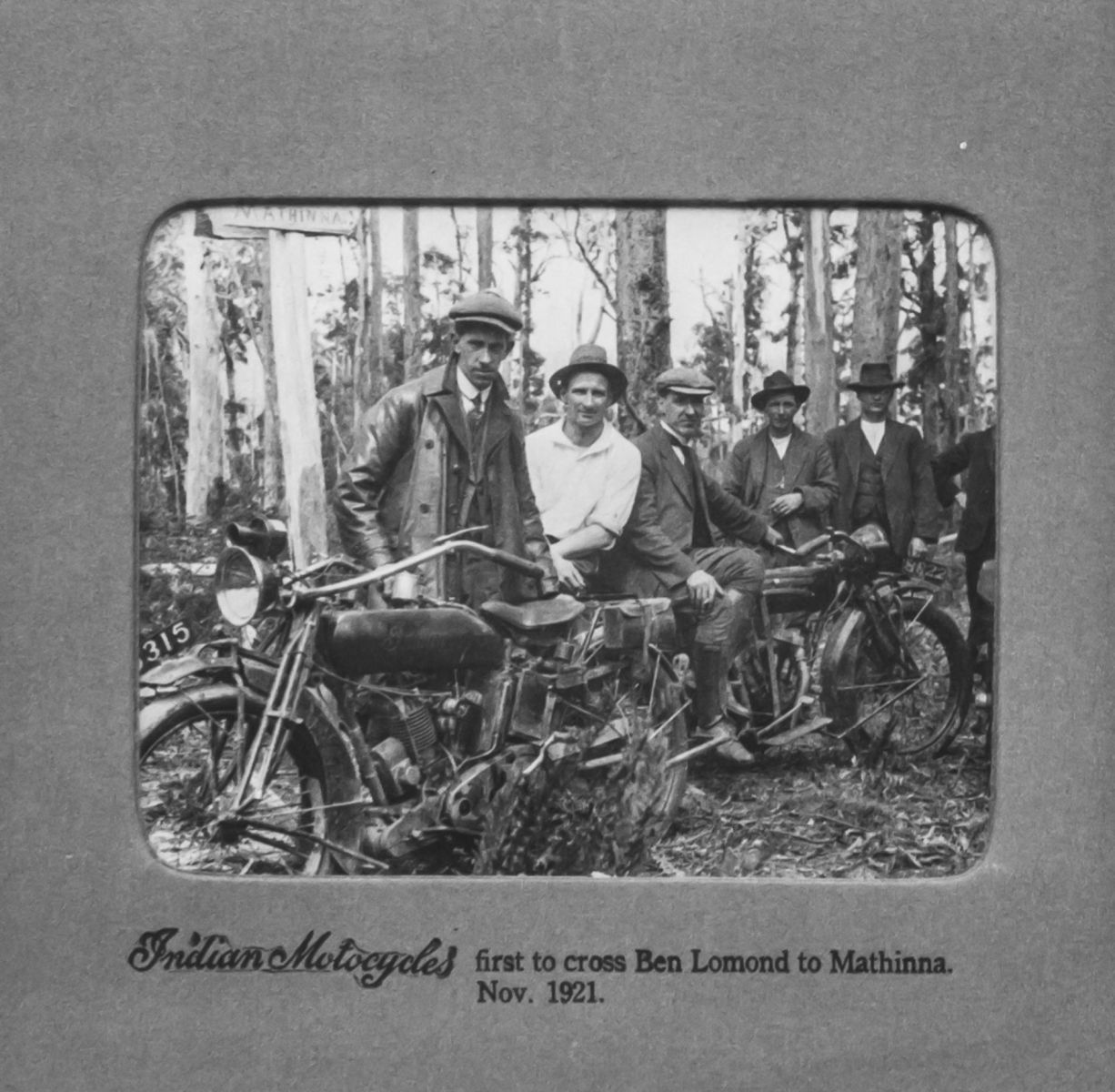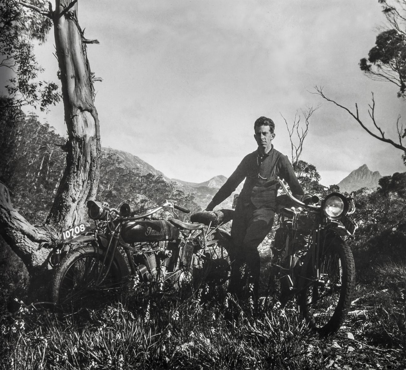 Motorcycle tales become apparent in strange places. On a walking adventure to Cradle Valley (Tasmania) we were at the Ranger Interpretation Centre admiring many photos of the pioneer adventurers on the walls. My wife suggested I needed to see one particular photo and a spark was lit to research this incident further.