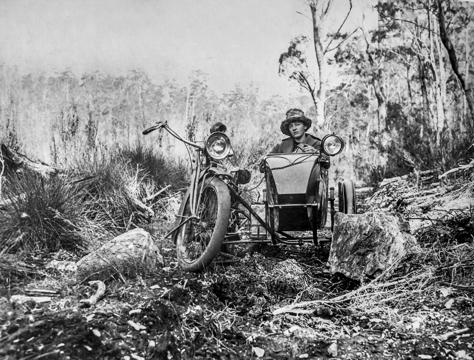 The other item of technology that Herb loved was the camera. He used photography both as an outlet for his creativity and also as a tool for publicising the family business. HJ King was a conservationist, botanist and photographed not only plants and landscapes but all facets of Tasmanian life. He used the motorcycle to get him to most photographic locations. He married young to Lucy Minna Large in December 1918. Lucy was an adventurer, horse rider and one of the first women to gain a motorcycle license in Tasmania. Before their first child was born, Lucy featured in King’s photography, often seated in the sidecar of Herb’s Indian on their adventures. While the (family-made) ‘Champion’ would have figured highly in his early riding life, it was the Indian that appears in most of Herb’s photographs. Pre-marriage it was a solo Indian and then as an outfit.