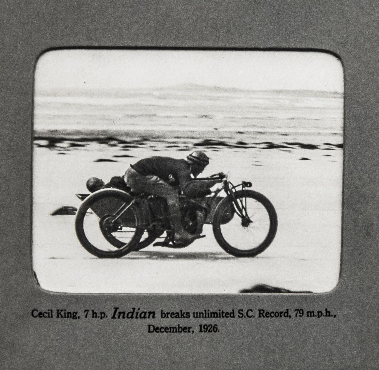 A series of King’s photos were mounted and on the surrounding frame there were captions to promote the “Indian Motocycle” (yes, the spelling is as Herb captioned). Here are some examples up to 1919: