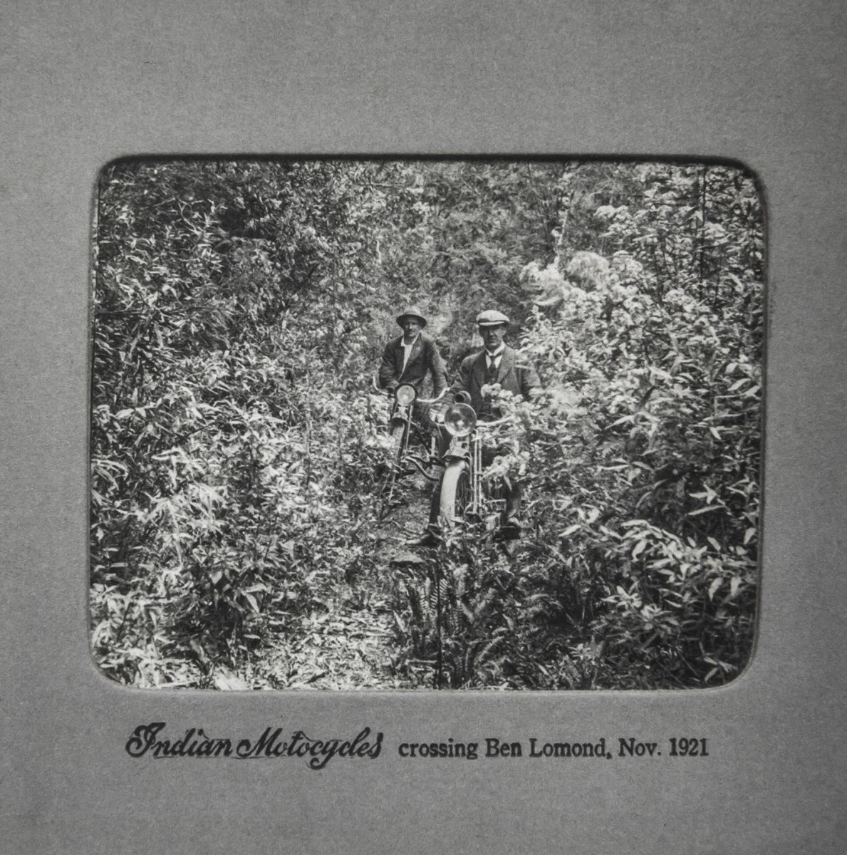 “Indian Motocycles, first to reach Projection Bluff, 4,000 ft. 1915”,