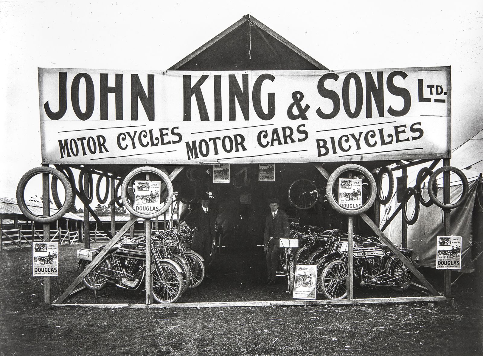 Herb’s dad John King, his wife and two sons (William & George) migrated to Tasmania from England in 1890. Herb was born on May 31, 1892 in Hobart. The family moved to Launceston and purchased Champion Cycles in 1901. The business had extensive workshop facilities which included plating, baked enamelling, lathes and milling machines, and brazing to make bicycles. John King saw the future, bought a (Melbourne-made) Beauchamp motor bicycle that same year and soon began building his own ‘Champion’ motor bicycles using Minerva, Peugeot and then JAP engines, making them the first motor bicycle business in Tasmania. The ‘Champion’ was manufactured to meet Tasmanian conditions, strongly-framed with a very low seat position, increased engine clearance and large, heavy tyres. The sons grew into the business and they were all keen on motorcycle racing. Will King set the Launceston to Hobart record on a Champion Minerva in 1904, breaking it many times over in the following decade. George King also raced the ‘Champion’, and managed the workshop. Herbert managed the showroom and spare parts business. Herb loved motorcycles, taking part in races, reliability trials, hill-climbs and famous for his long-distance adventure trips. John King & Sons became agents for Peugeot, many English motorcycles brands, J.A.P. engines and later, Indian motorcycles.